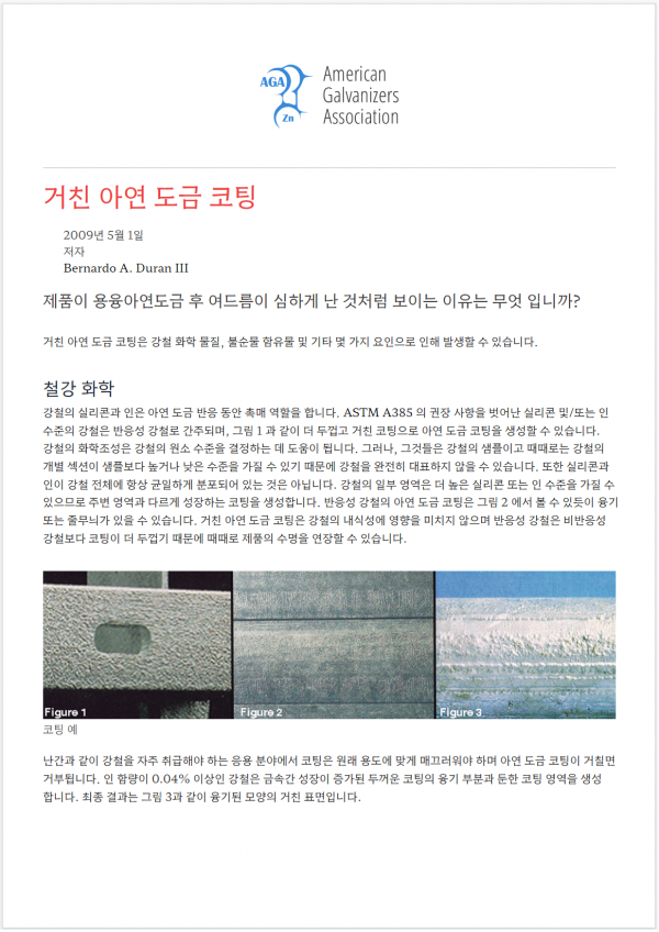 - 거친 아연 도금 표면 - [미국 아연 도금 협회].pdf (242.1K) 67회 다운로드 | DATE : 2022-12-20 17:08:41
