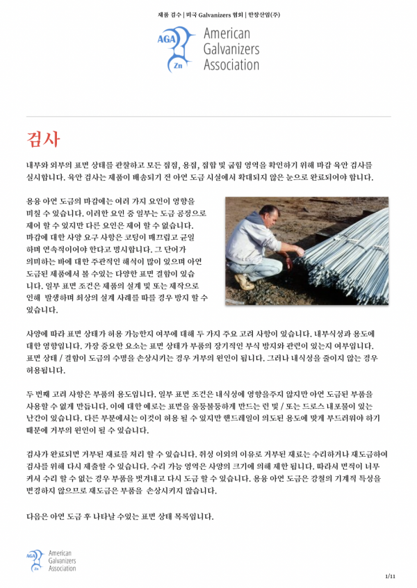 - 용융아연도금 제품 검수 Finish _ American Galvanizers Association.pdf (1.3M) 121회 다운로드 | DATE : 2022-04-01 12:29:39