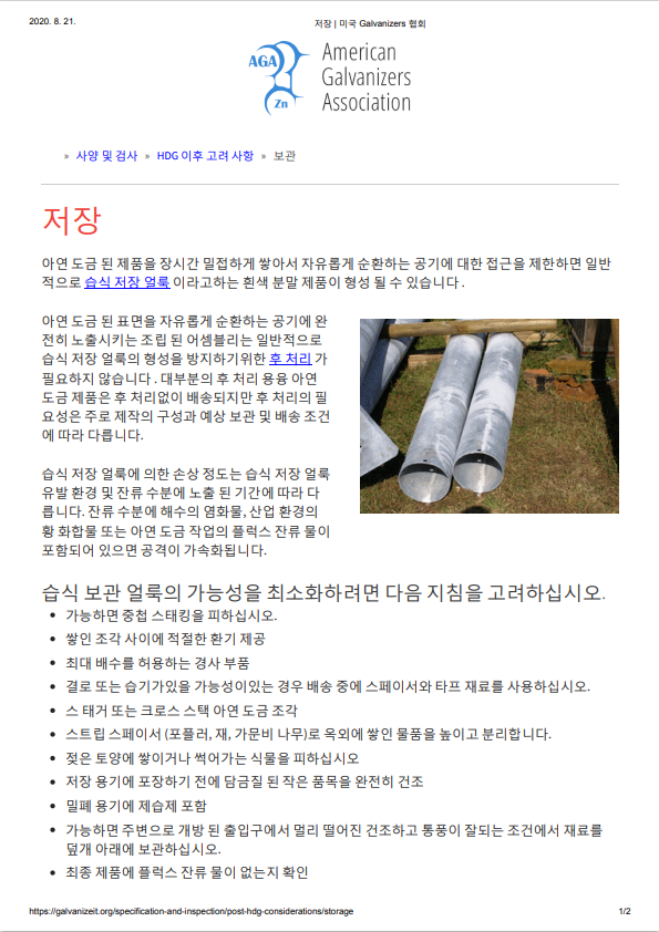 - 용융아연도금 제품의 보관 및 저장 - 미국 Galvanizers 협회.pdf (374.2K) 92회 다운로드 | DATE : 2020-08-24 15:43:18